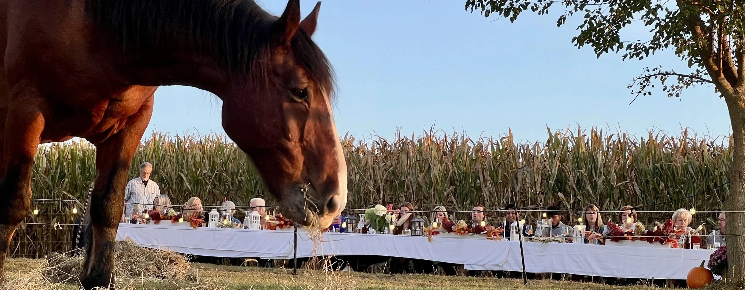 Enjoy the evening uninterrupted: rural view, grazing horse herd, outstanding food and service, and memories unforgettable.