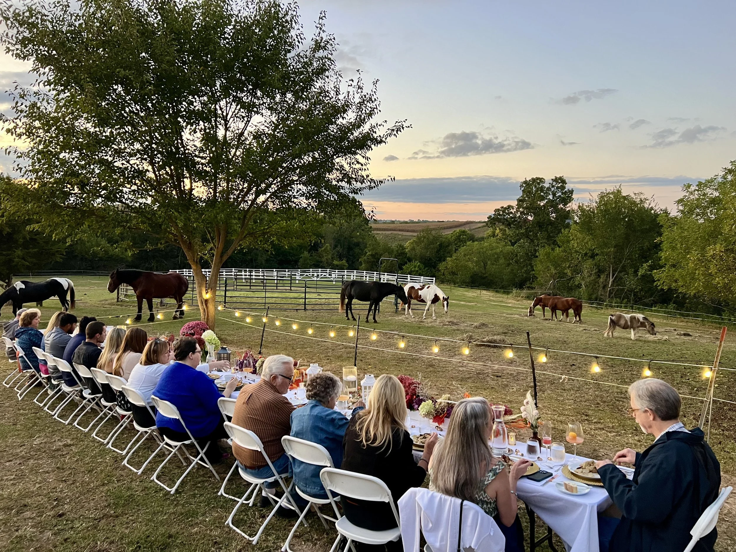 Set against the serene backdrop of rolling pastures of grazing horses, this intimate gathering offers guests the chance to enjoy a beautiful chef-crafted meal outdoors in rural Galena.